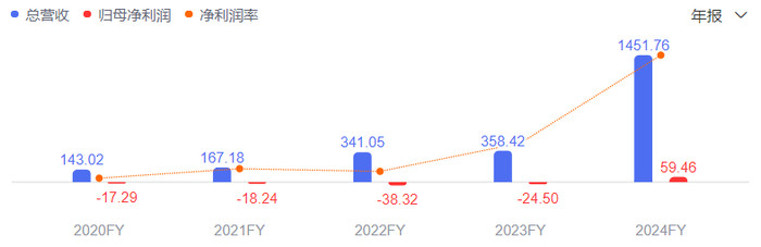 但随着2021年与华为牵手,又煎熬了两年,赛力斯靠问界在2024年迎来绝地反击,营收从300多亿,一下子飙升到1450亿,还从数年亏损跳转为盈利近60亿,成为国产造车新势力中第二家盈利的车企。